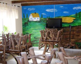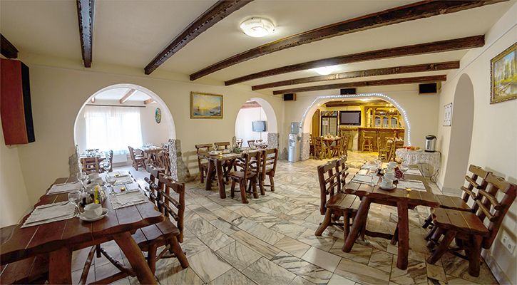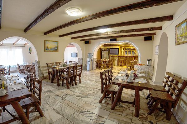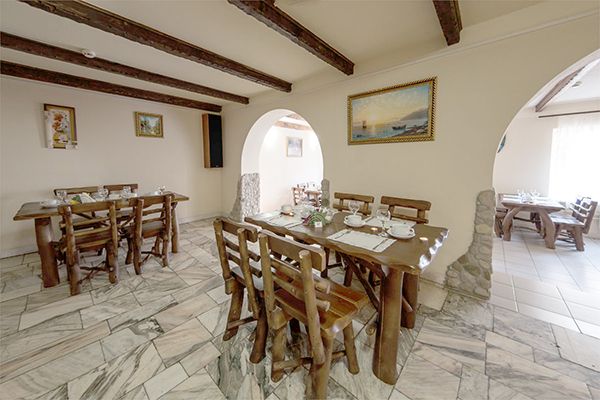 На территории работает столовая с небольшим банкетном залом и летней верандой, организована мангальная зона, где отдыхающие могут пожарить мясо. Среди услуг — беспроводной интернет и охраняемая парковка для автовладельцев.