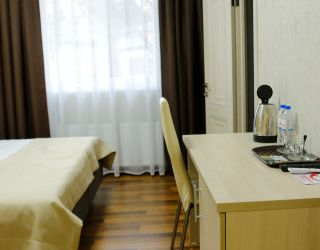 Трехэтажный гостевой дом разместился в тихом спальном квартале города. Гостей ожидают 15 двухместных номеров с удобствами. Комнаты, оформленные в приятной пастельной гамме, укомплектованы удобными одноместными или двухместными кроватями, также везде есть кондиционер, телевизор, холодильник.
