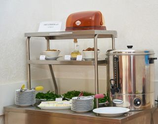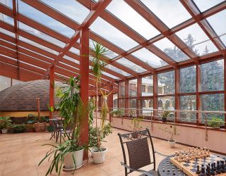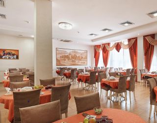 В санатории работает столовая, где гости могут заказать трехразовое комплексное питание. В распоряжении отдыхающих банный комплекс с сауной и хаммамом, массажный кабинет и салон красоты. Для поклонников активного образа жизни в санатории есть тренажерный зал, предусмотрены занятия скандинавской ходьбой и прогулки по терренкурам. Гостям также доступны услуги прачечной, парковка около территории, беспроводной интернет. Для детей организованы игровая комната и площадка.
