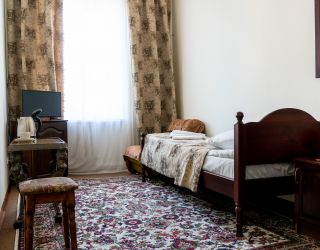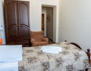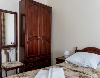 Четырехэтажный корпус (без лифта) расположен на пересечении улиц Герцена и Дзержинского. Небольшой жилой фонд пансионата предлагает отдыхающим 49 мест. Гостей ожидают номера Стандарт и Улучшенной категории. В каждом номере есть санузел с душем, необходимая мебель и техника — электрочайник, телевизор, фен, холодильник.