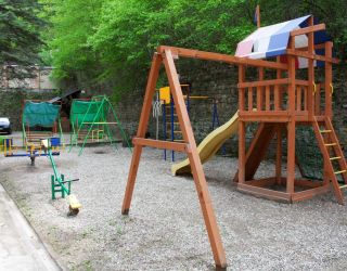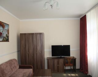 Двухэтажное здание пансионата расположилось в тихом квартале города. Небольшой жилой фонд, рассчитанный на единовременное размещение 38 человек, предлагает отдыхающим одно-, двух- и трехкомнатные номера. В каждом номере имеется санузел с душем, бытовая техника — телевизор, электрочайник, холодильник и удобная мебель. Ряд номеров оборудован балконами.