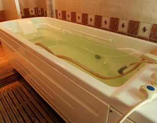 Санаторий располагает отличной лечебной базой, здесь есть своя водо-лечебница (лечебные души, нарзанные ванны, плавательный бассейн), ингаляторий.