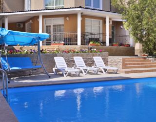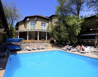 От отеля до поселкового галечного пляжа даже медленным шагом можно дойти всего за несколько минут (около 300 метров). Галечный пляж оборудован навесами, есть прокат пляжного инвентаря.