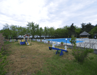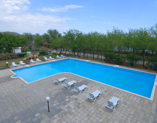 Поселковый мелкогалечный пляж, расположенный рядом с отелем, оборудован всем необходимым, за дополнительную плату можно арендовать пляжный инвентарь.