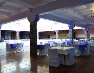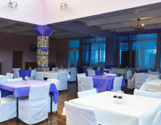 Все гости пансионата размещаются с питанием на выбор: только завтрак или полный пансион. Питание по системе «шведской стол» организовано в кондиционированном зале столовой на территории пансионата. В меню включены первые и вторые горячие блюда, закуски, свежие овощи и фрукты.Столовая расположена в отдельном корпусе. В пансионате работают кафе и бар — джаз-клуб «Богема».
