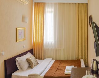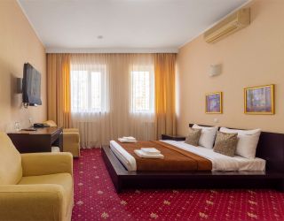 Пятиэтажное здание отеля включает в себя 28 комфортабельных номеров первой категории и бизнес-класса. Лаконичный современный интерьер отеля выдержан в светлых приятных тонах. Все номера оборудованы санузлом с душем или ванной, качественной мебелью итальянских производителей, бытовой техникой — есть телевизор, холодильник, кондиционер.