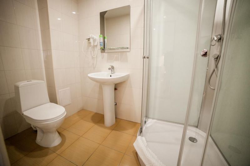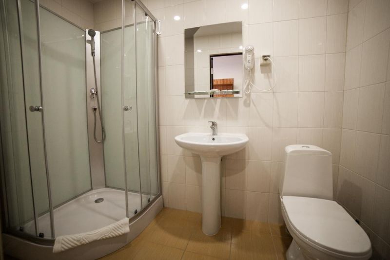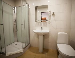 Рядом с аэропортом. Удобно на одну ночь. Приятная территория (самолетов не слышно вообще), деревья за окном (как в санатории) вкусный завтрак. Выбрали номер с удобствами. Зимой останавливались в номере без удобств - только умывальник)) общие удобства на этаже были.