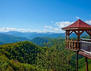 База "Горное настроение"-место довольно таки уникальное во всех проявлениях бытия и не бытия...Я помню состояние, когда в первый раз попала на смотровую площадку плато Лаго-Наки и посмотрела на горы Кавказа. Давно это было, а помню как сейчас. Потрясала мощь природы, потом ты вплетался в эту природу какое-то время, а потом это большое в прямом и переносном смысле место становилось тобой, ты словно становился больше внутри и уходил уже другим, унося нечто необычное, но родное внутри себя навсегда...Вот что-то подобное у меня случилось и на "Горном настроении". Когда ты попадаешь на смотровую площадку-ощущение, что судьба тебе выдала счастливый билет, как будто ты находишься в центре мира у Бога за пазухой...Сама площадка гениально сделана-она круглая с зеркальными стеклами и ты стоишь между грядой красивых и величавых гор и их отражений, как будто летишь немножко...Еще воздух чистейший..тишина...или не тишина, все равно... Еще впечатление осталось от собственной свободы. Ничто и никто на тебя не давит..Место какое-то сильное.. В таких "местах силы" есть одна изюминка-в каждом обычном на первый взгляд действии происходит многогранность...Ты делаешь один шаг, а пространство в виде всего отвечает тебе десятью шагами...Так и там по моему ощущению...Сама природа, жилье, еда и персонал очень гармонично переплетаются. И ты там ни как гость, а как действующее лицо. Всех ребят из персонала запомнила..Очень доброжелательные ребята. Видать команда у них собралась хорошая, цельная. Если и есть трения, я думаю они разруливаются, потому что если попросишь помощи у кого-нибудь, а он не может в данный момент, тут же кто-то другой сделает, как в улике у пчел... Столовая прекрасная...деревянная с уникальными скульптурами..шведский стол-компонуешь еду как тебе приятно..Даже в столовой себя чувствуешь философски-место красивое, сделано с любовью..В общем впечатление прекрасное и глубокое..Место действительно многогранно откликается....Туда можно приехать одному для тишины или с компанией...Домики разные, можно компоновать команду в зависимости от финансовых возможностей каждого..Можно организовывать конференции разные..Там есть очень интересный конференц-зал..Это вообще отдельная песня.Он круглый и окна выходят на смотровую площадку. Люди, которые стоят на смотровой площадке, не видят тех, кто в зале-окна отражающие..Вот представьте, что идет какая-нибудь конференция или практики...а в перерывах и по окончанию люди выходят на смотровую площадку...и такое сильное впечатление остается от всего....В зале конструкция деревянного потолка сделана так, что получается необычная акустика..Я такой нигде не встречала и как птичка певчая сразу же это услышала..Так что кому интересно, то там можно делать концертные программы без аппаратуры, а если и с аппаратурой, то там все есть как я слышала, но лучше уточнить...Для духовных практик лучше выбирать внесезонье и не выходные или праздничные дни, когда людей поменьше, чтобы и людям не мешать и свое состояние вместе с природным глубже услышать...База достойная для приглашения каких-нибудь делегаций, например иностранных...Там все гармонично сделано-помещения для жилья, столовая, ресторан, зал с обзорной площадкой, ребята, которые знают свое дело и с уважением и любовью относятся к своей работе...Там нет искусственной помпезности, котора