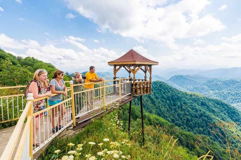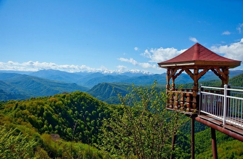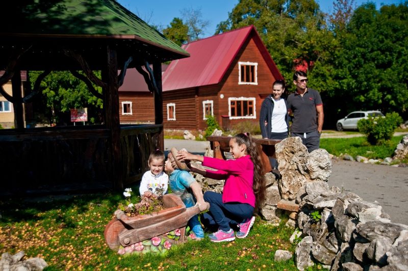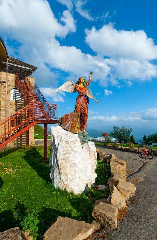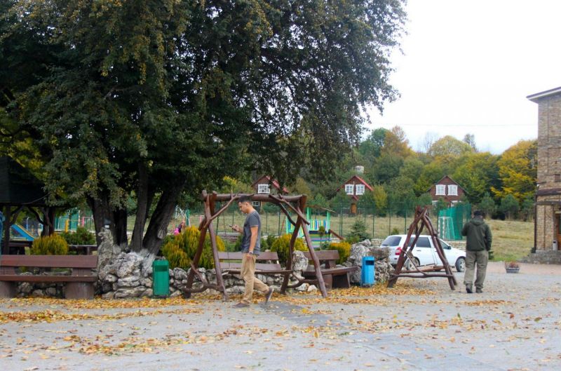 База удобно расположена , с хорошим ландшафтным дизайном, удобными игровыми площадками, как для детей, так и для взрослых. Уютные беседки для отдыха и чаепития. Смотровая площадка с панорамой на Горные вершины и плато Лагонаки, манит своей красотой. Выйдя ранним утром из номера, можно наблюдать, как под пение птиц всходит солнце, освещая верх облаков, которые “ отдыхают ”в ущелье, как пух легко “прилегли” на вершины невысоких гор. Мы любуемся этой красотой с высоты птичьего полета. Выше облаков. И, в этой сказочной тишине, под переливы птичьих голосов наблюдаешь, как солнце постепенно окрашивает золотисто-розоватым светом вершинки гор.
