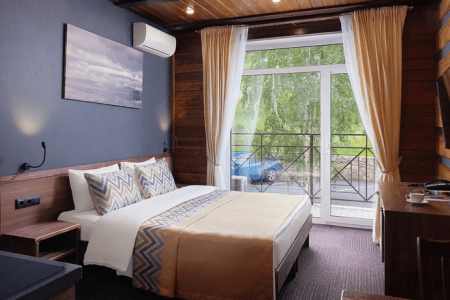 Самолетом до аэропорта г. Челябинска, далее на автобусе или электричке до г. Миасса. Затем на такси или на автобусе №299 до остановки «Сад Надежда», далее 2,7 км до отеля.