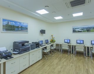 В наличии 2 зала переговоров на 9 и 16 этажах.