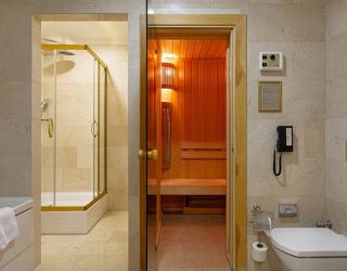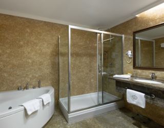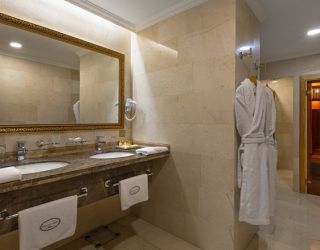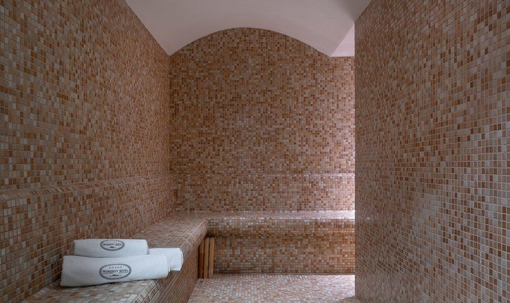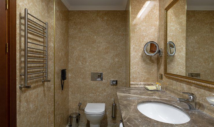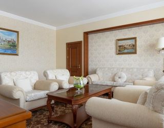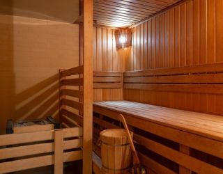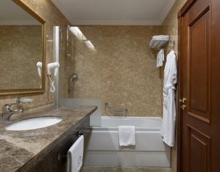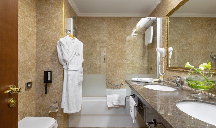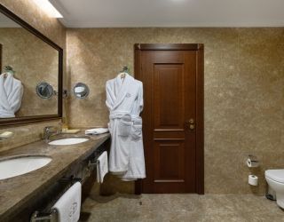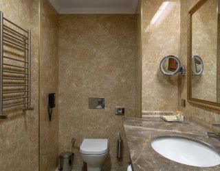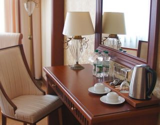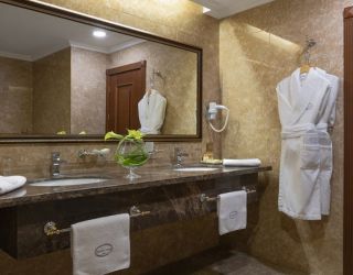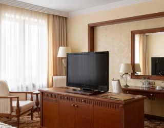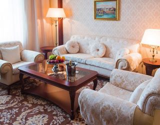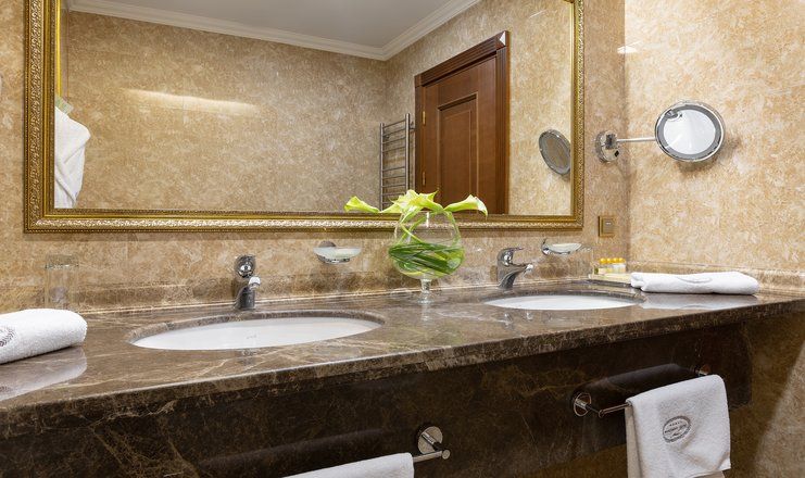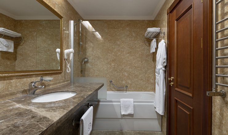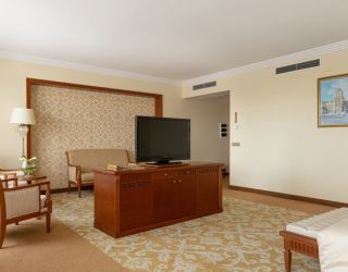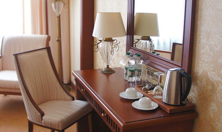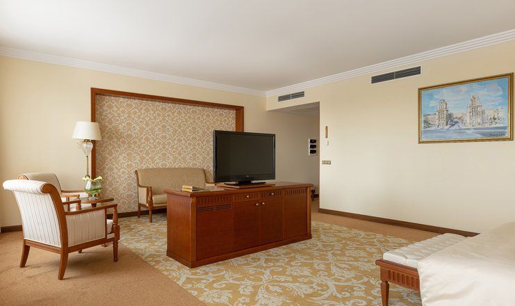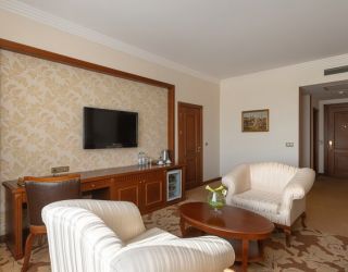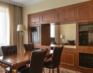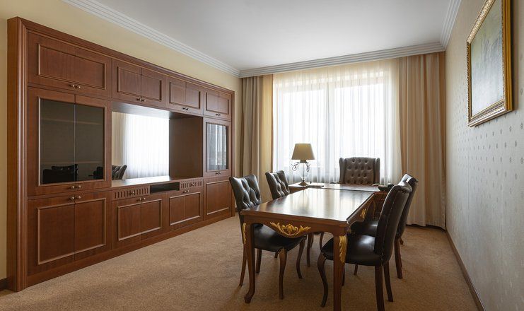 В Апартаментах обустроен рабочий кабинет. Отдельным достоинством номера является обустроенная кухня: посуда, холодильник. В ванной находится инфракрасная сауна и набор косметических средств премиум класса.