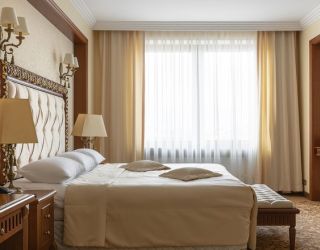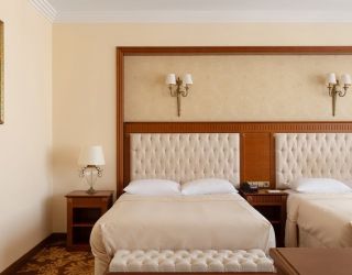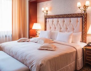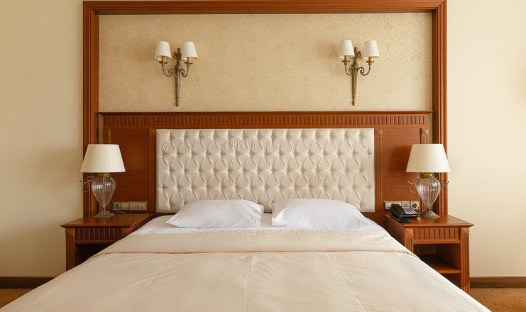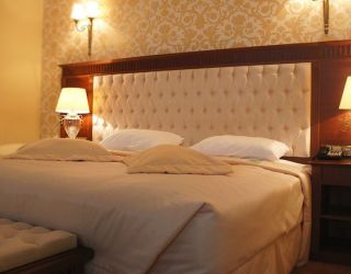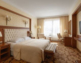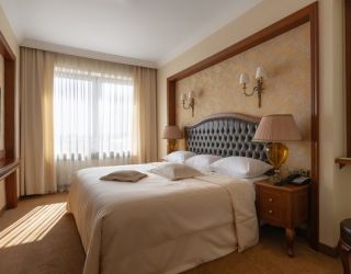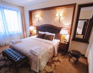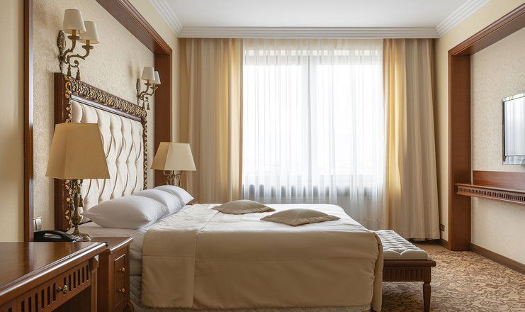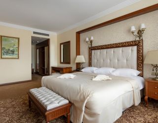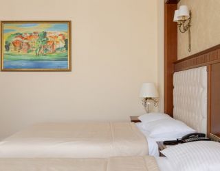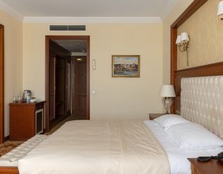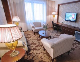 11-ти этажный корпус отеля, оснащенный лифтом, возвышается на пересечении улиц Энгельса и Кирова. Обширный жилой фонд предлагает отдыхающим 154 номера разных категорий — Стандарт, Полулюкс, Люкс и трехкомнатные Апартаменты. В комнатах изысканный классический интерьер, выдержанный в пастельной гамме с использованием шоколадных и охристо-золотых оттенков. Во всех категориях номеров – санузел, центральная система кондиционирования, чайник, утюг, фен, халат и тапочки. В номерах категории Полулюкс, Люкс и Апартаменты – ванна с гидромассажем.