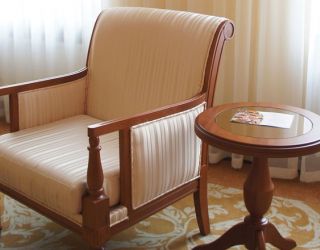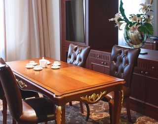 Просторный зал для пышных торжеств или масштабных бизнес мероприятий. Зал имеет дизайнерское оформление в классическом стиле. Оттенки глубокого зелёного и коричневого дополнены постельными тонами бежевого, что создаёт особую атмосферу роскоши и королевского великолепия. А технические возможности позволяют исполнить любой индивидуальный заказ.