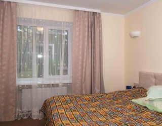Площадь территории санатория - 12.6 га, она огорожена забором, ухожена и охраняется. Номерной фонд санатория, рассчитанный на 80 мест, размещается в трех спальных корпусах без лифта и теплых переходов: 3-этажном главном корпусе и в двух 2-этажных корпусах. На территории находится водогрязелебница и клуб. Столовая расположена в здании главного корпуса на 1 этаже. Для размещения отдыхающим предоставляются светлые номера категорий стандарт, полулюкс, люкс и номера блочного типа в главном корпусе и корпусе №2 с санузлом на два номера.