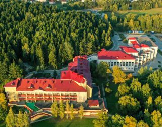 Самолетом до аэропорта г. Минск, далее на маршрутном такси №140 до остановки «Площадь Якуба Коласа», далее на маршрутном такси №485ш до остановки «Сёмков Городок», далее пройти пешком 370 м до санатория