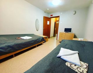 Здравница размещается в трехэтажном здании без лифта, на первом этаже расположен мед.блок, столовая - на минус первом. К услугам гостей также бар, который находится в основном корпусе и фито-бар.