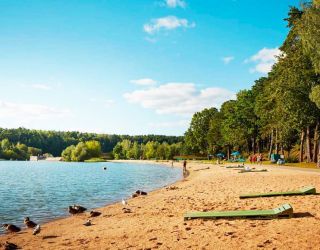 Самолетом до аэропорта г. Минск, далее на маршрутном такси №1400 до остановки «Станция метро Октябрьская», далее на маршрутном такси №1119 до остановки «Школа», далее пройти пешком 680 м до санатория.