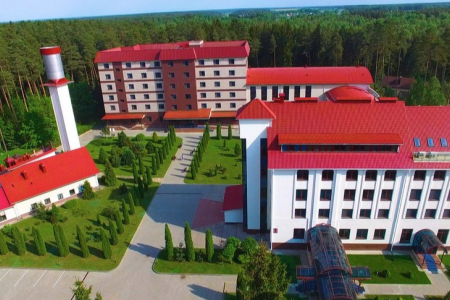Поездом до ж/д вокзала г. Минск, далее на метро до станции «Институт культуры», далее на электричке до станции «Дзержинск», далее пройти пешком 1,9 км до санатория.