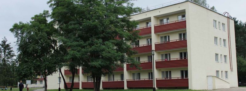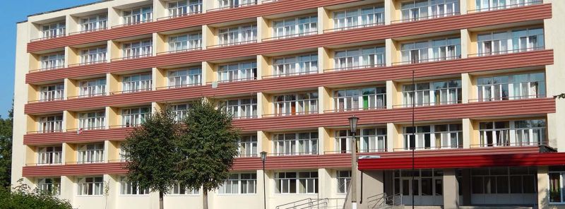 Поездом до ж/д вокзала г. Могилев, далее на автобусе №14 до остановки «Санаторий Сосны», далее пройти пешком 800 м до санатория.