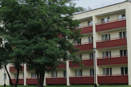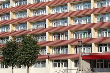 Поездом до ж/д вокзала г. Могилев, далее на автобусе №14 до остановки «Санаторий Сосны», далее пройти пешком 800 м до санатория.
