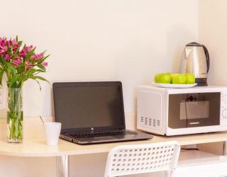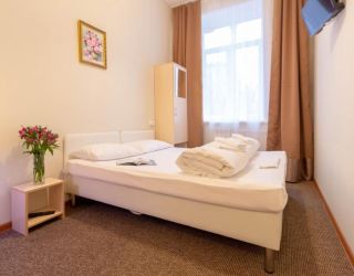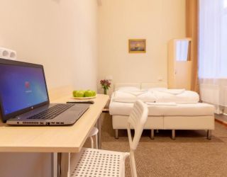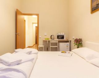 Пятиэтажное здание отеля находится в спальном зеленом квартале. В распоряжении гостей 28 комфортабельных номеров с уютными интерьерами, выдержанными в пастельных оттенках. В каждом номере есть собственный санузел, мини-кухня, оборудованная посудой и техникой, а также рабочая зона с письменным столом, ЖК-телевизор и фен.