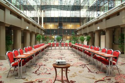 Для проведения мероприятий отель предлагает 5 многофункциональных конференц-залов общей площадью 549 кв.м. и вместимостью до 485 человек.