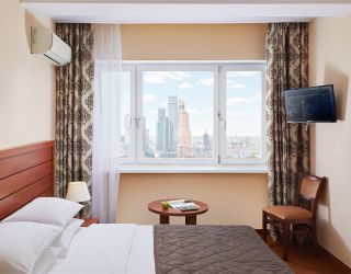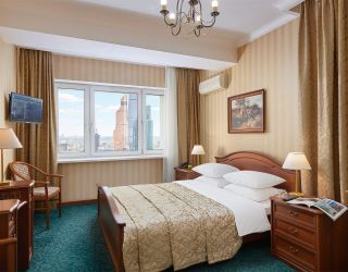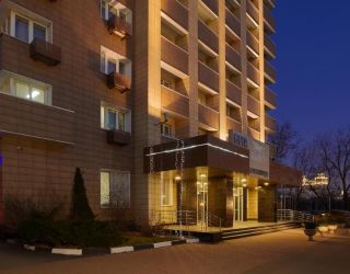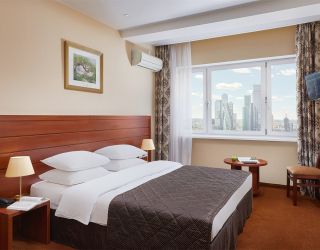 Тринадцатиэтажное здание отеля, оснащенное лифтом, возвышается на Беговой аллее недалеко от Ленинградского проспекта. Жилой фонд включает в себя 160 номеров категории Стандарт и Люкс. В номерах классический интерьер, есть телевизор, кондиционер, фен, собственный санузел с ванной или душем.