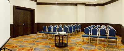 Зал «Крымский» подходит для проведения небольших конференций и тренингов. Зал вмещает до 56 человек рассадкой «театр» и 42 человек рассадкой «класс».