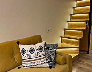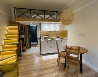 Апартаменты расположились в 5-этажном жилом доме. В комнатах выполнен современный ремонт в стиле сканди и лофт, установлена удобная мебель для отдыха, есть места для хранения одежды. К услугам гостей телевизор с плоским экраном и кабельными каналами, кондиционер, Wi-Fi. Санузел с душем, полотенцами, туалетными принадлежностями и феном.