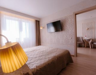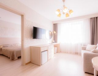 На территории санатория площадью чуть больше 5 гектаров разместились связанные между собой переходами два 6-ти этажных жилых корпуса и лечебный блок. Номерной фонд, рассчитанный на размещение 460 человек, предлагает отдыхающим номера категории Стандарт и Повышенной комфортности, оформленные в приятных светлых оттенках. В каждом имеется санузел с душем или ванной, мини-холодильник, в ряде номеров есть кондиционер.