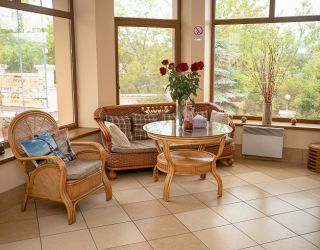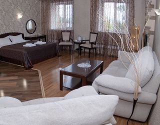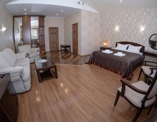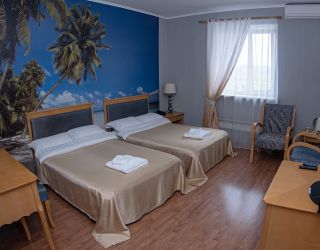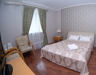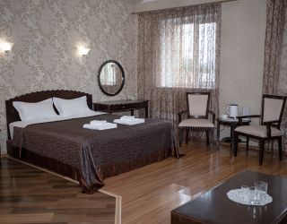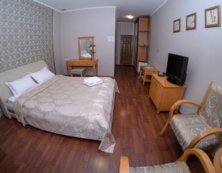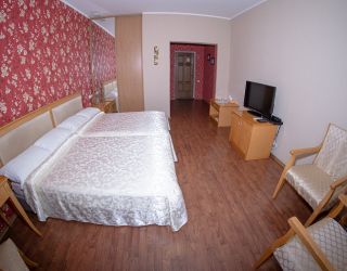 Здание отеля разместилось в экологически чистом районе города. В распоряжении отдыхающих комфортабельные двухместные номера с классическими интерьерами. В каждом номере предусмотрена ванная комната с душем, есть кондиционер, телевизор, холодильник.