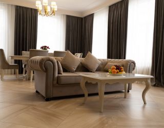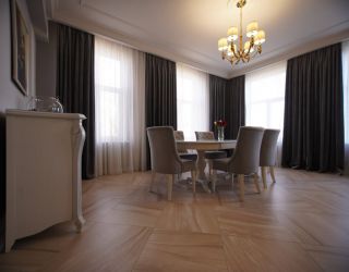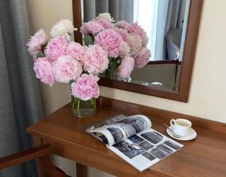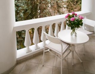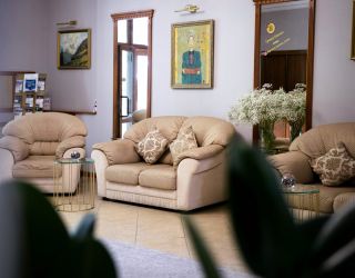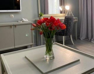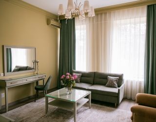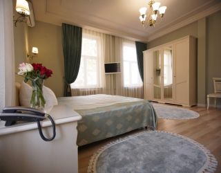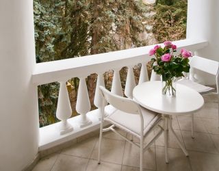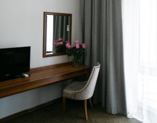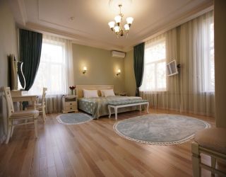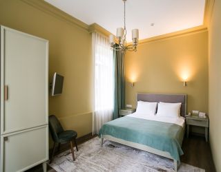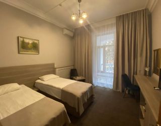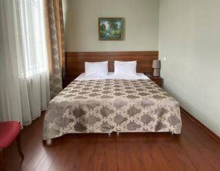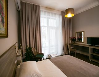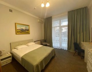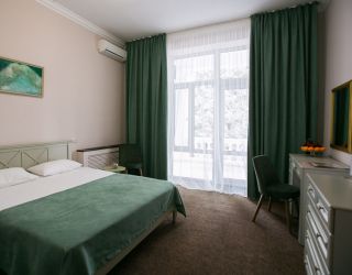 Трехэтажное здание отеля, фасад которого украшен белоснежными колоннами и балюстрадами, разместилось на закрытой озелененной территории. Отель предлагает гостям однокомнатные номера Первой категории и двухкомнатные Люксы. В номерах классический интерьер, выдержанный преимущественно в пастельных оттенках, везде имеется ванная комната с душем, качественный мебельный гарнитур, телевизор. Номера Люкс оснащены дополнительной бытовой техникой.