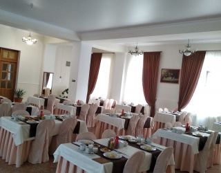 На первом этаже спального корпуса работает столовая, где гости могут заказать себе комплексное питание, в том числе и халяльные блюда, то есть без свинины.