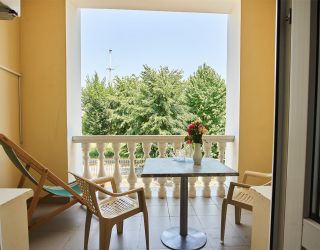 Здравница занимает территорию площадью 2 гектара, рельеф и благоустройство которой продиктованы природными ландшафтами. Комплекс состоит из одного трехэтажного жилого корпуса с лечебно-диагностической базой и отдельно расположенного здания бассейна. Санаторий, способный единовременно разместить 80 человек, предлагает отдыхающих номера категории Стандарт и Люкс. Все номера оснащены санузлом с ванной, бытовой техникой — телевизором, холодильником, электрочайником. В номерах Люкс имеются балконы с балюстрадой.