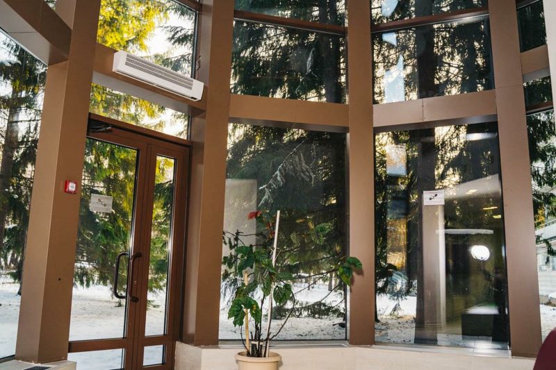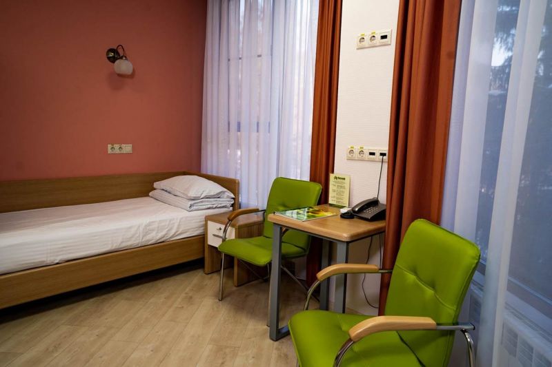 Корпус центра представляет собой 4-этажное здание, утопающее в зелени леса. Вокруг – ухоженная территория, парковые дорожки, скамейки, тропы терренкура. Неподалеку стоит Казанская церковь. Для проживания предусмотрены номера различной комфортности. В каждом из них – индивидуальный санузел, кровати, ТВ, холодильник, в некоторых установлены кондиционеры в зависимости от категории.