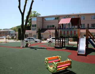 База идеально подходит для семейного отдыха, так как здесь принимают детей без ограничения в возрасте, а на территории площадью 1,4 га находится большой открытый бассейн с пресной водой с детским отделением и подогревом, во дворе оборудована игровая площадка с песочницей и игровым комплексом, в прокат можно взять детскую кроватку. Дети до 2-х лет без предоставления отдельного места и питания принимаются бесплатно, с 2 до 5 лет без места с обязательной оплатой завтрака, оплата на месте.