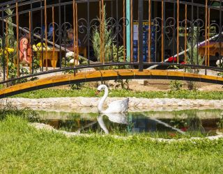 Поездом до ж/д вокзала г. Феодосия, далее на автобусе №4 до остановки «Рынок», далее пешком 990 м до базы отдыха.