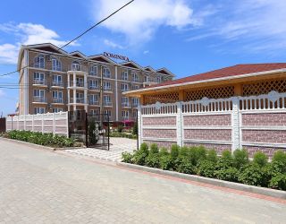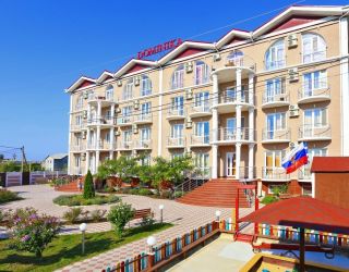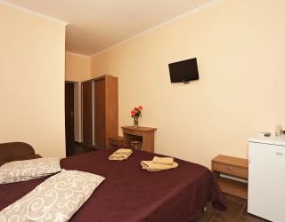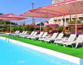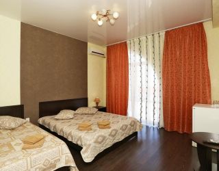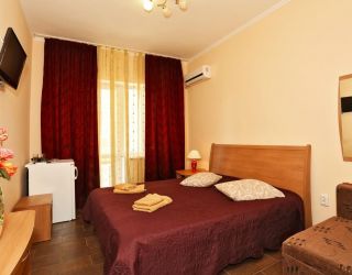 Четырехэтажный корпус отеля расположен на небольшой благоустроенной территории в 350 метрах от Черноморского побережья. Жилой фонд предлагает отдыхающим 62 номера Стандарт и Люкс. Все номера оснащены душем, кондиционером, есть телевизор и холодильник и балконы.