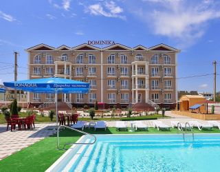 Отель «Доминика» находится в поселке Береговое, расположенном в километрах от Феодосии. Поселок славится самым протяженным песчаным пляжем полуострова и отлично подходит ля отдыха с детьми. В шаговой доступности кафе, бары, магазины, остановки общественного транспорта. До главных достопримечательностей Феодосии —музея Грина, картинной галереи Айвазовского, руин Генуэзской крепости можно доехать за 20 минут. Дорого до аэропорта в Симферополе займет около полутора часов.