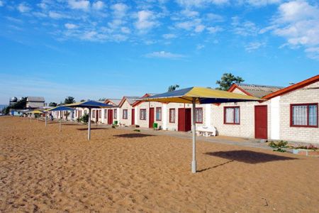Поездом до ж/д вокзала г. Феодосия, далее на автобусе №4 до остановки «Санаторий Маяк», далее пешком 97 м до курортного комплекса.