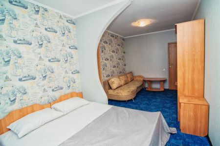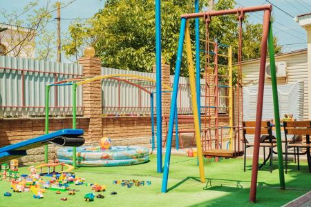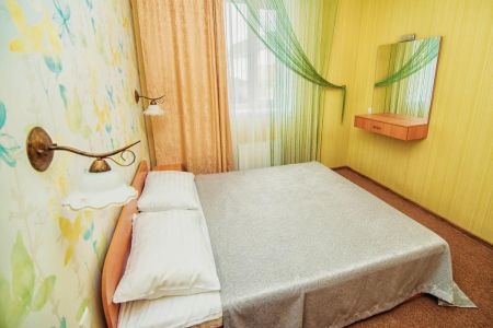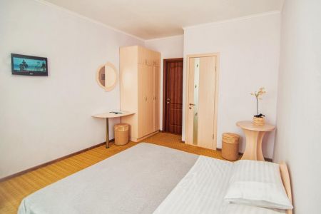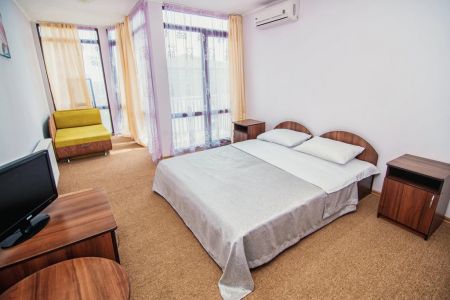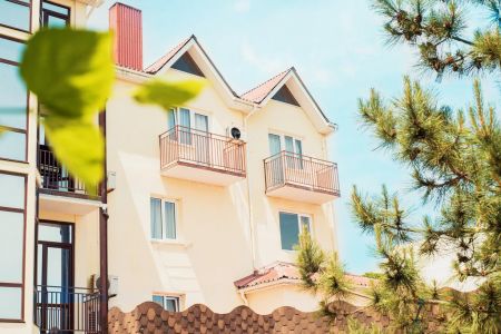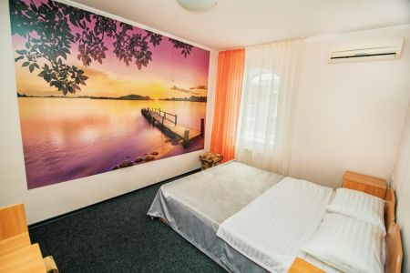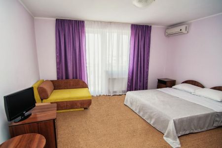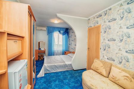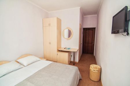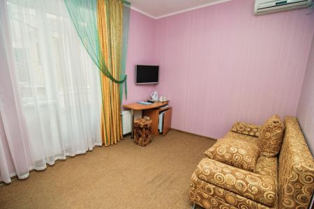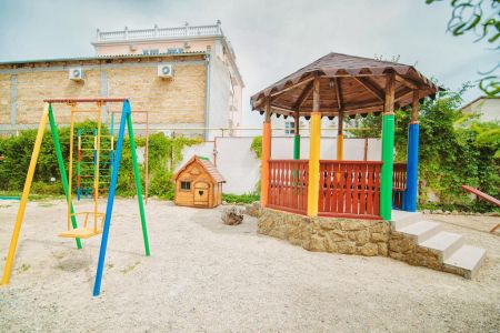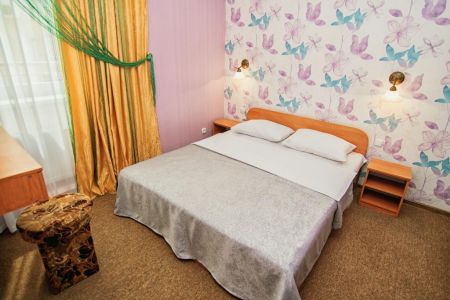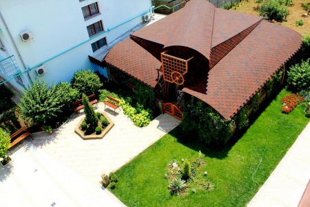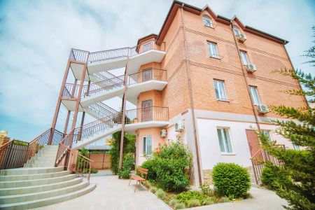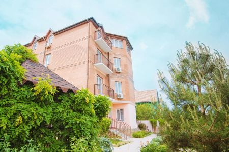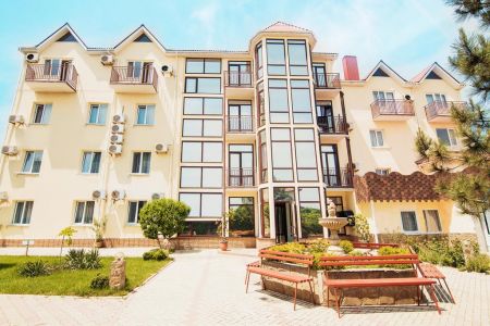 Поездом до ж/д вокзала г. Феодосия, далее на рейсовом автобусе №4 до остановки «Родина Мира», далее пройти пешком 520 м до отеля.