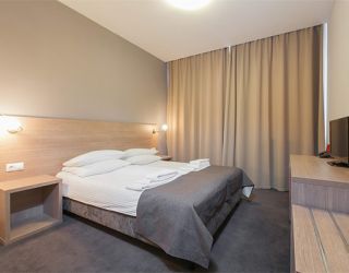 Двухэтажный корпус отеля разместился рядом с Большой окружной дорогой. Жилой фонд, способный вместить более 70 человек, предлагает гостям двух- и трехместные комфортабельные номера. Везде предусмотрен собственный санузел, есть плазменный телевизор и небольшой холодильник.