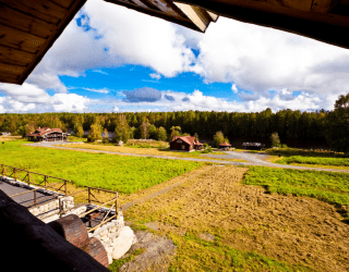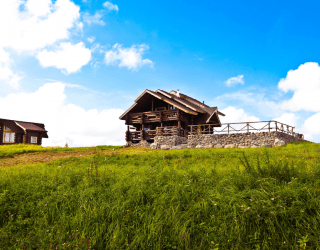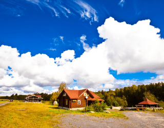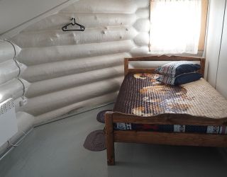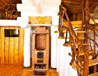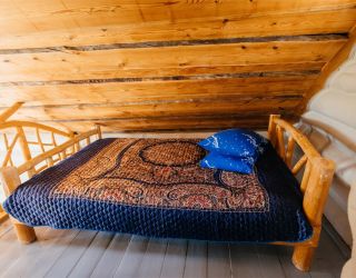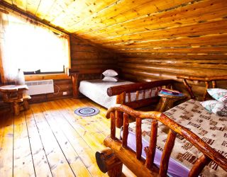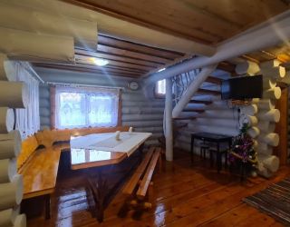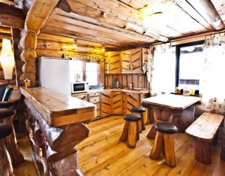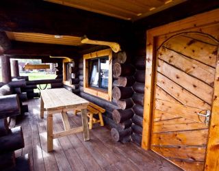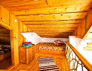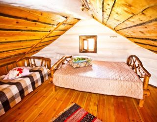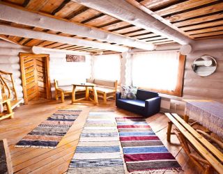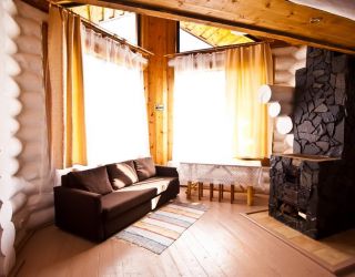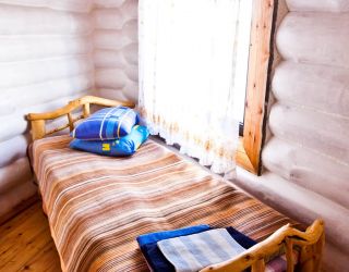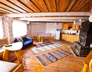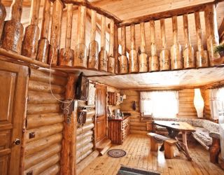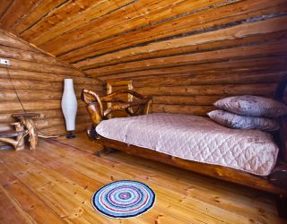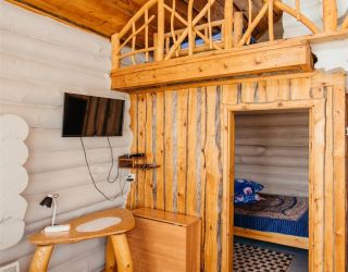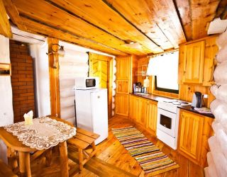 Для размещения гостям предлагаются деревянные одноэтажные и двухэтажные коттеджи-избы. В каждом доме есть мини-кухня с электроплитой, санузел с душем, телевизор. Вся мебель выполнена из натурального дерева, а внутри гостей ожидают приятные деревенские интерьеры.