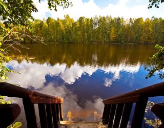 Поездом до ж/д вокзала ст. Кондопоги, далее на автобусе №115 до остановки «Большое Вороново», далее 2,29 км до базы отдыха.