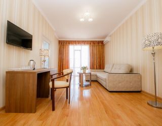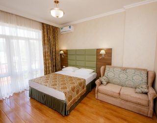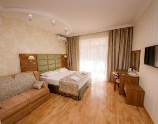 Отель «Гранат» (Дивноморское) выполнен в современном изысканном стиле. 3-этажный жилой корпус предлагает номера категории Студия и Люкс. Комплектация номеров включает в себя кондиционер, мини-холодильник, телевизор, электрочайник, набор чайной посуды, ванную комнату с душем туалетными принадлежностями и феном.
