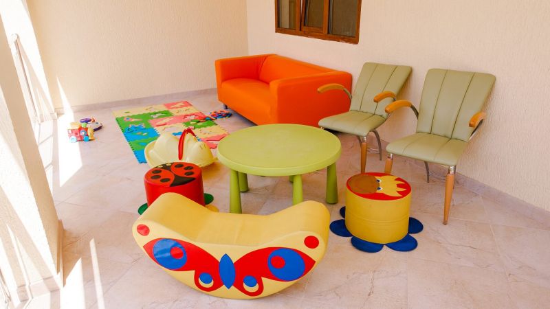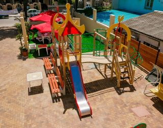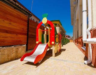 На территории отеля «Гранат» (Дивноморское) располагается большая детская площадка с игровым комплексом, качелями, домиками, скамейками. Также есть крытая игровая площадка, где дети могут провести время в жаркое время или в дождь.