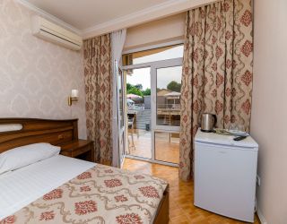 Отель располагает всем необходимым для семейного отдыха с детьми, веселой компании и влюбленных пар. Номера оснащены всем необходимым для комфортного и безопасного отдыха, что позволяет чувствовать себя уютно и непринужденно. Номерной фонд представлен номерами Студия, Люкс и Делюкс. В комплектацию номера входит современная мебель в классических тонах, сплит-система, мини-холодильник, телевизор, сейф. Каждый номер имеет отдельный санузел с душем, туалетными принадлежностями и феном.