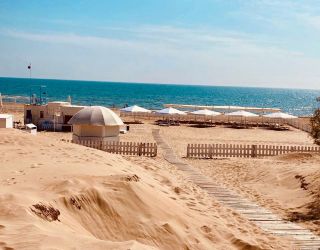 Отель Дюны Золотые находится в пригороде Анапы в поселке Джемете. В шаговой доступности — кафе, магазины, аквапарк и железнодорожный вокзал. У отеля удачное местоположение — до центра города или же до аэропорта можно доехать за 15 минут, а всего в километрах — железнодорожный вокзал, куда приходят поезда из Москвы и других российских городов.
