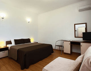 В каждом имеется ванная комната, кондиционер, спасающий от южной жары, электрочайник и плазменный телевизор.